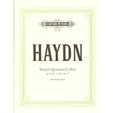 Though Franz Joseph Haydn did not "invent" the string quartet, he is often considered the "Father of the String Quartet" because of his huge contribution to the genre. Within this medium, he was extremely prolific; 83 works for quartet are attributed to him. Some of those pieces have, in recent years, been deemed spurious by scholars (i.e., they may possibly be the work of other composers), but the body of compositions believed to be Haydn's is still quite large. Not only did he compose a great quantity of quartets, but the quality of those pieces is very high - setting such a standard for this type of composition that later composers, including Mozart and Beethoven, would pattern their quartets on his, striving for their exquisite beauty and perfection. Haydn's String Quartet in C Major, Op. 76, No. 3, Hob. III:77 , is also known as the "Emperor" quartet (or "Kaiser" in German), and is one of his most famous and beloved works for string quartet. The name comes from the sublime second movement, in which Haydn quotes an anthem he composed for Emperor Francis II, the last ruler of the Holy Roman Empire. The melody is quite famous, and later became the German national anthem - a post it still holds today. This edition contains parts for two violins, viola, and cello, and is edited by Simon Rowland-Jones. Published by Edition Peters. Difficulty: A5